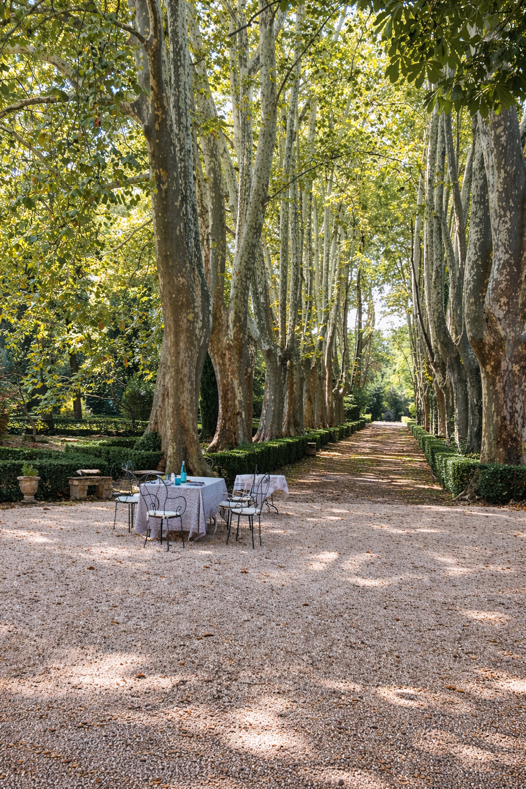 Approached by a plane-tree allée, a hallmark of traditional Provençal bastide estates.