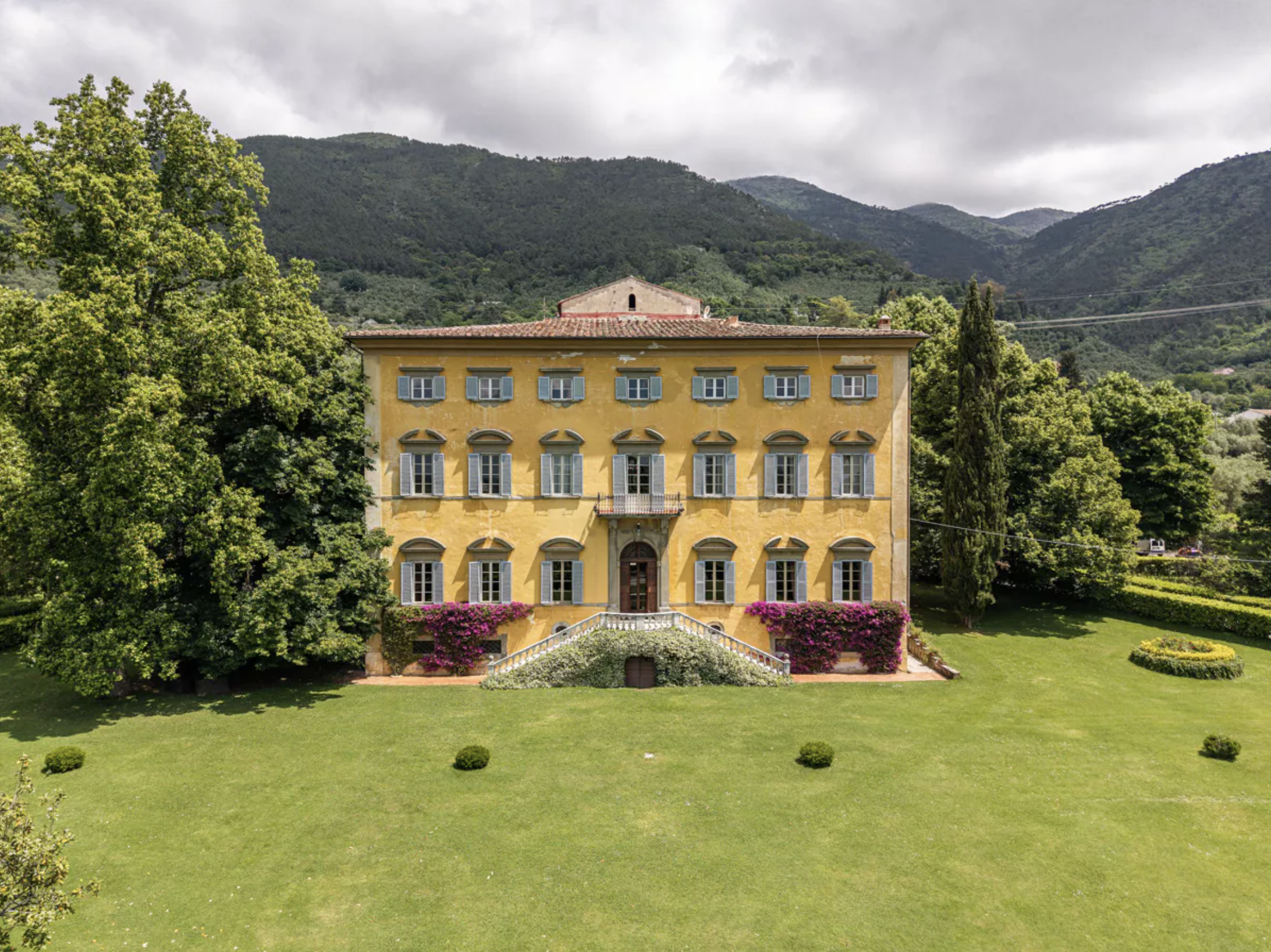 Originally built as a hunting retreat, the 2,500 m² estate includes 19 bedrooms, extensive gardens, and views toward Piazza dei Miracoli and the Leaning Tower of Pisa on clear days.