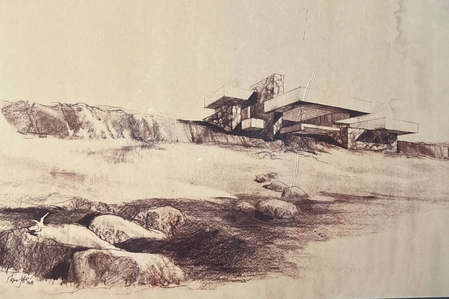 Norman Jaffe designed the Osofsky House, whose early sketches bear a striking resemblance to Wright’s Fallingwater, designed in 1939.