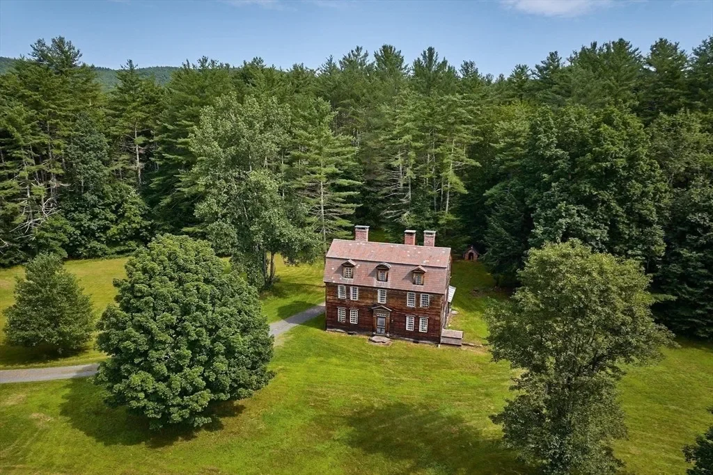 The property sits within the northern Berkshires, part of a rural corridor in western Massachusetts defined by landscape and outdoor recreation. The area is known for skiing at Berkshire East Mountain Resort, whitewater rafting and kayaking along the Deerfield River, and the Mohawk Trail, one of the oldest scenic routes in the United States, which runs through the region. The house is located approximately 2.5 to 3 hours from Boston and about 4 hours from New York City.