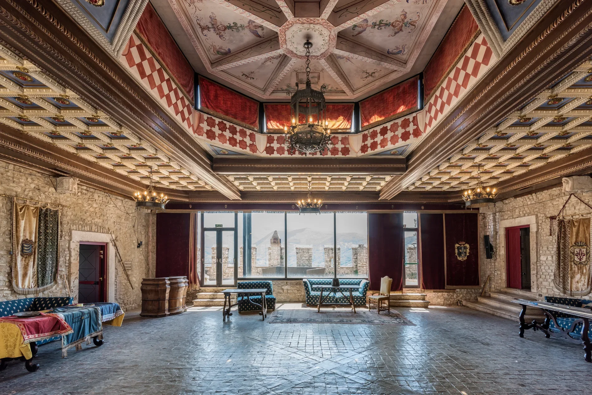 Set within the village of Nerola in the Sabina hills, about 45 km from Rome, the 11th-century fortress underwent extensive restoration in the 20th century, preserving its medieval exterior while preparing it for hotel and event use.