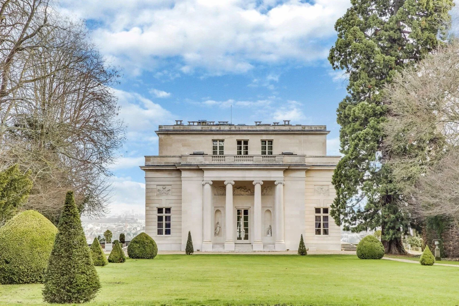 This unique property is situated overlooking the Seine, with panoramic and inescapable views on the Eiffel Tower, La Défense and Le Mont Valérien. Set within a 14 acre park of English gardens, the Pavillion was designed by architect Claude-Nicolas Ledoux and built in 1770.